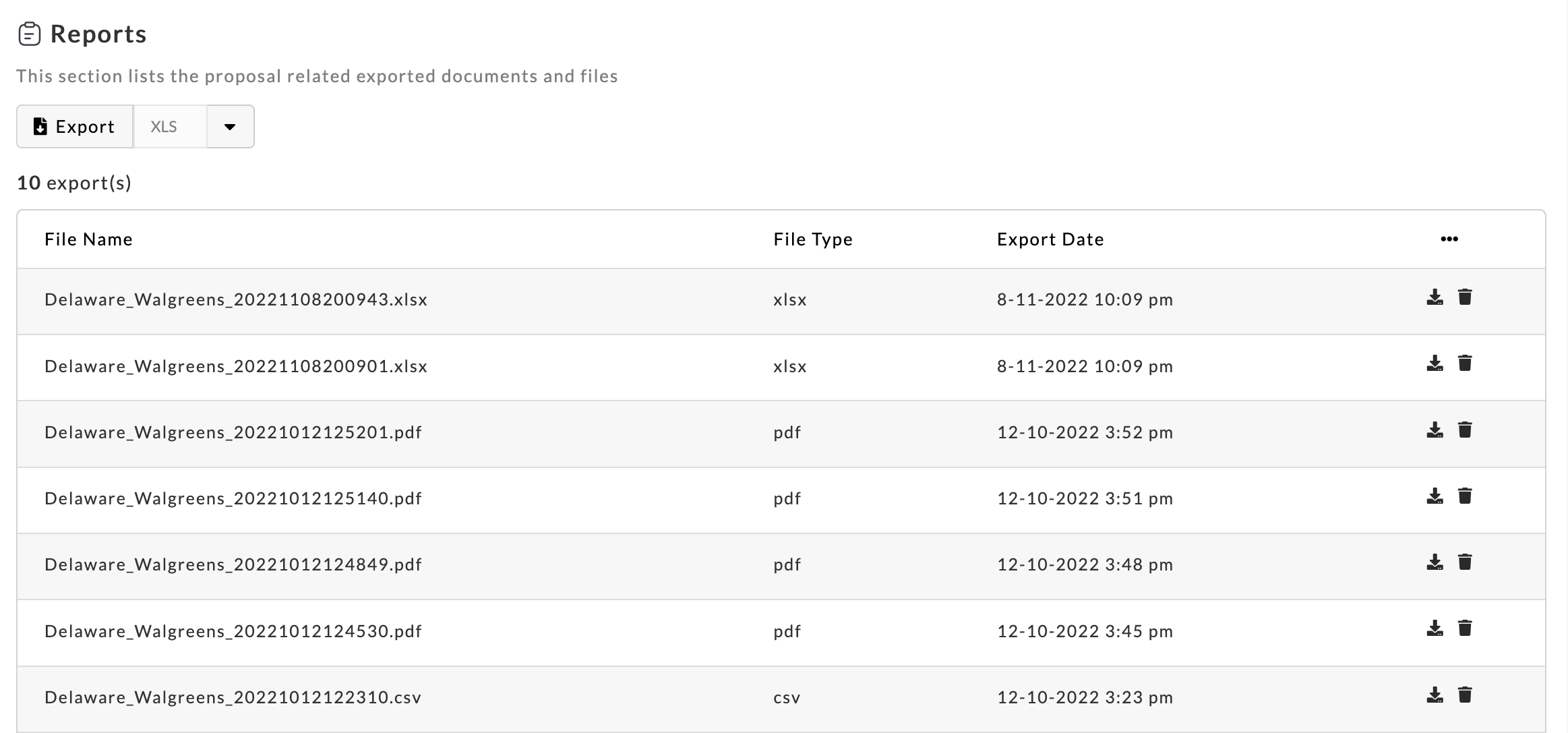 Upload drawings, specs, and related files directly into the proposal record. Export proposals in a click for clients or internal use.