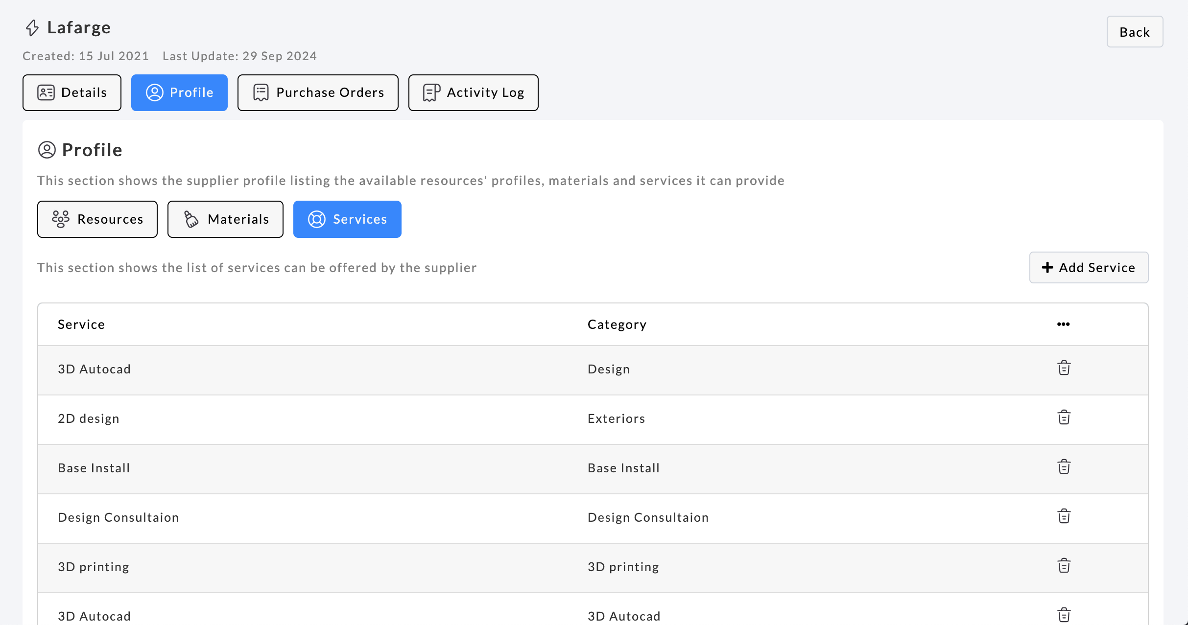 See what services and materials each supplier can deliver. Categorize and organize offerings for fast procurement decisions.
