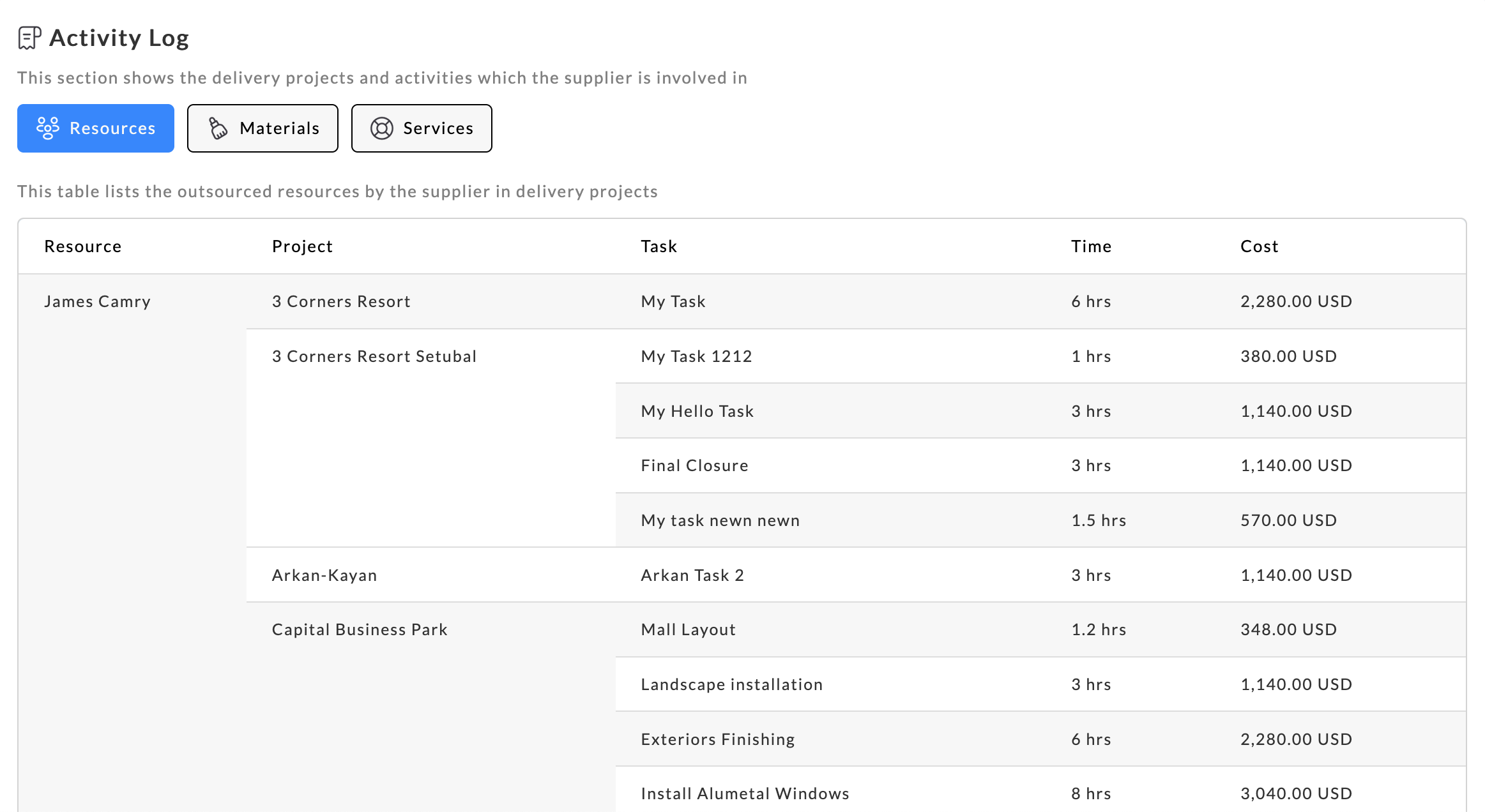 See what each supplier has delivered and when. Filter by project, material, or resource and monitor historical supply data.