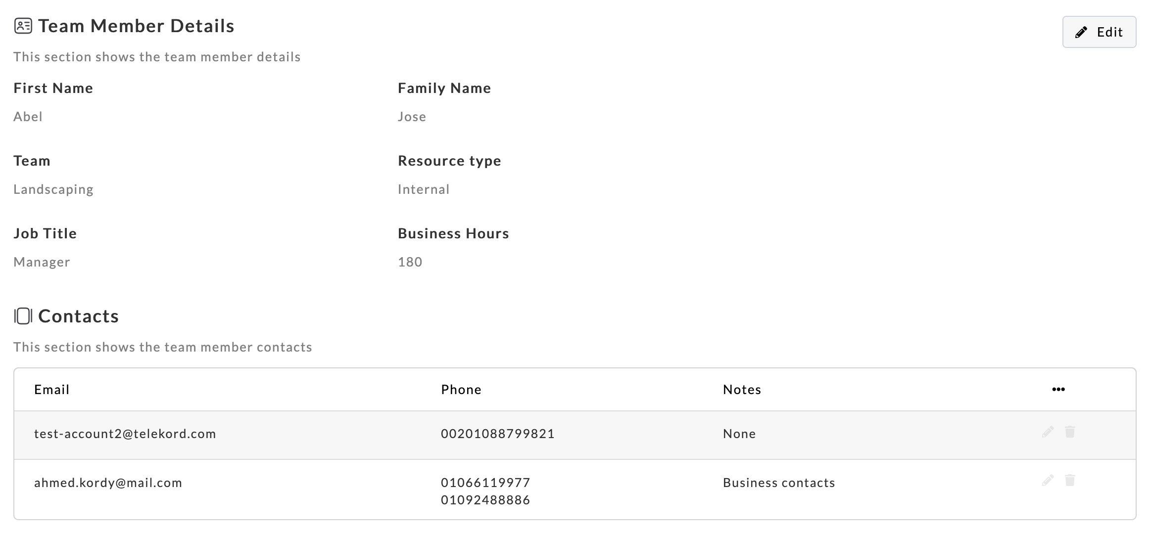Drill down into a team member’s profile to review job title, hours, skills, tasks, and contact info. Everything is editable and audit-ready.