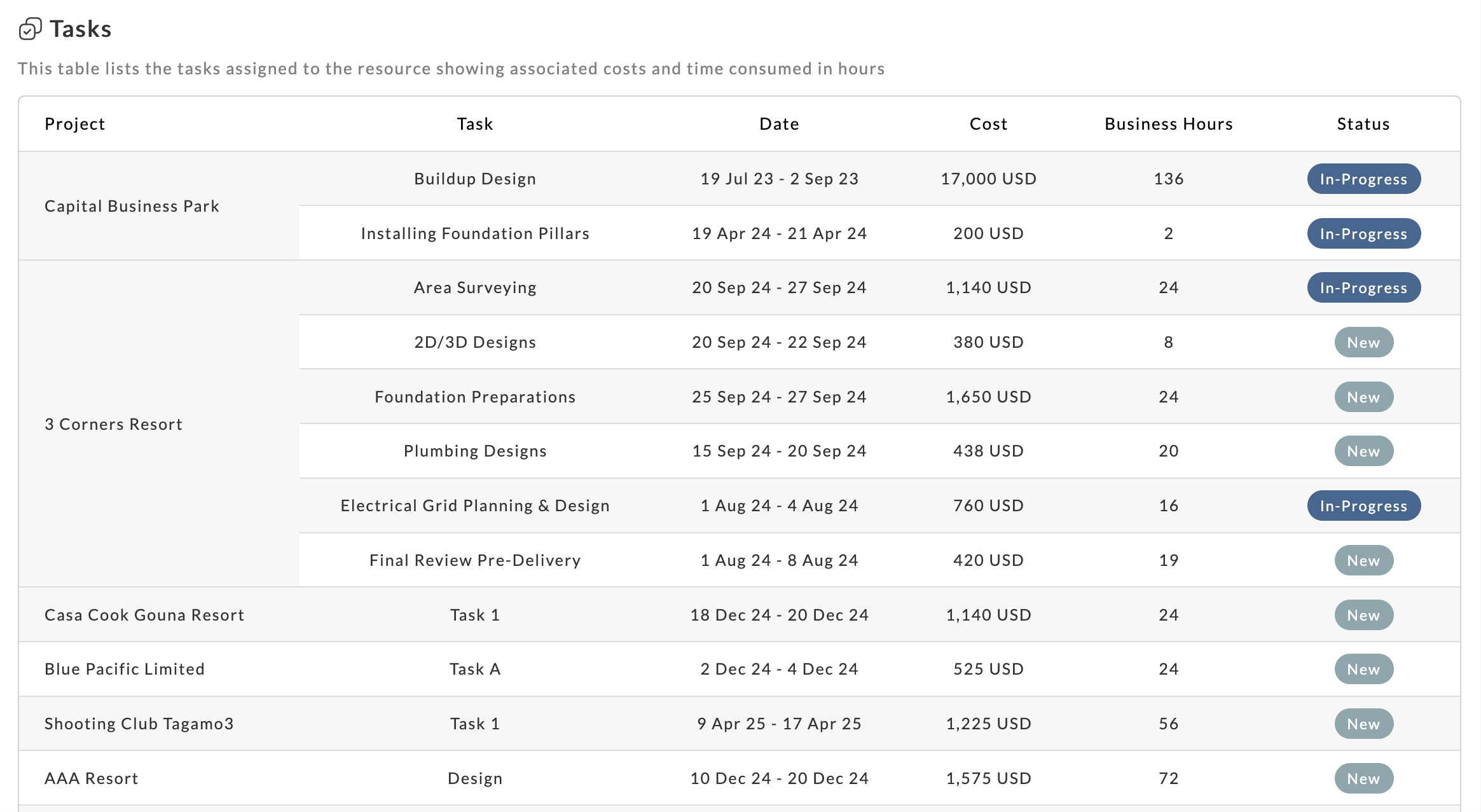 Tasks are grouped by project, showing cost, hours, and status — so you know exactly where everyone’s time is spent.